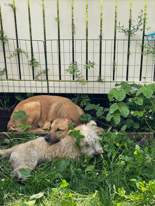 Siskoni lapsi, eli toinen kummityttöni syntyi. Toinen kesäkuun tärkeä tapahtuma oli tietysti veljentyttöni Junon 4v synttärit. Minä jatkoin yhä työntekoa mukavissa kesätöissäni, joissa Sibbekin pääsi pyörähtämään menestyksekkäästi. Koirilla oli muitakin mukavia juttuja: Merri pääsi vierailulle meillä kotihoidossa majailleen rescuekoira Arvin luo, koirat muistivat selvästi toisensa. Sibbe mukana partioleirillä, olin taas pohtinut, voinko ottaa sen mukaan, mutta onneksi otin. Leiriläisiä oli enemmän kuin oman lippukuntamme retkillä, mutta sehän ei Sibbeä haitannut; enemmän rapsuttajia!